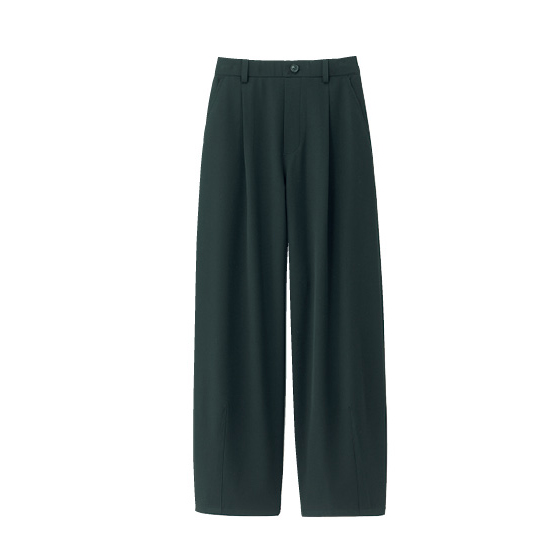 コクーンパンツを、大人がはきやすいカーブのゆるいシルエットに。ウエスト前はフラット仕様なので、トップスインしてもおなか回りがすっきり見え。※通年着用できます。