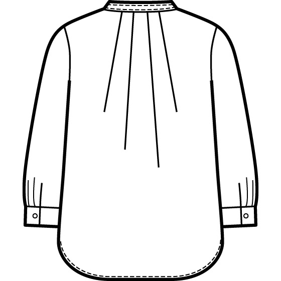 日本製の生地に表起毛加工とワッシャー加工を施し、よりソフトな風合いに。衿はバンドカラーで顔回りがすっきり見え、ギャザーやタック使いと日本製ならではの細かなフロッキープリントで華やかな印象に。