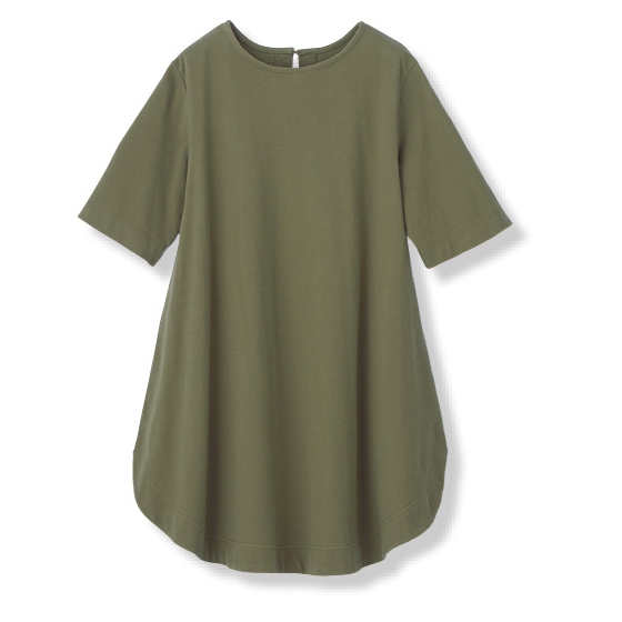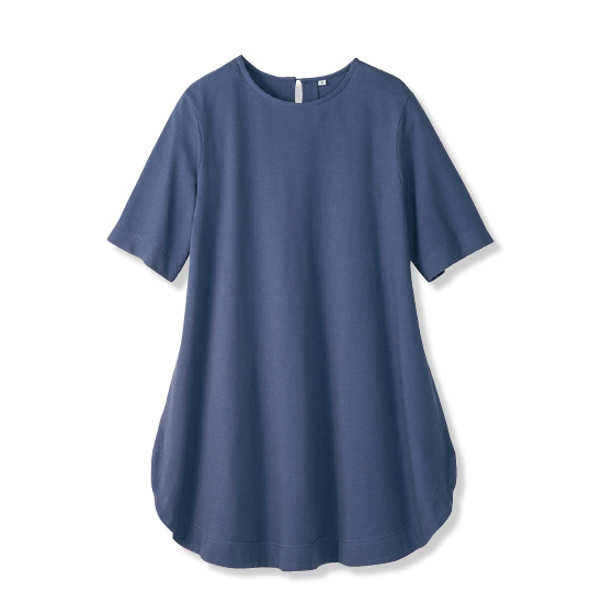 5分袖は、上品な印象です。かなり裾が広がっているため、脚が細く見えます。鹿の子地なので、さらっとしていて貼り付く感じがなく、暑いときにはもってこい。