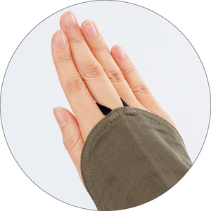 袖口のゴムループを指に通せば、手の甲まで日焼け防止。