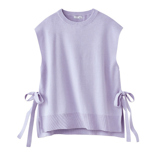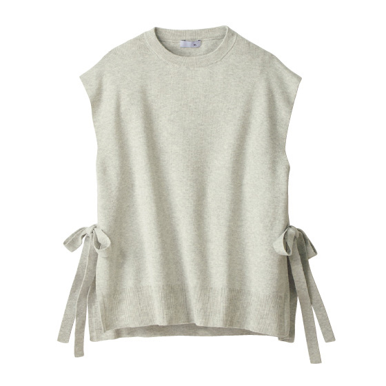 ゆったりシルエットとやや長めの丈感、サイドスリットにあしらったリボンで重ね着スタイルを。インナーを変えれば季節を問わず活躍します。