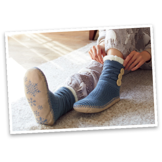 外側はニット素材、内側は全面シープ調ボアの2重構造で寒い冬も足元ぬくぬく。