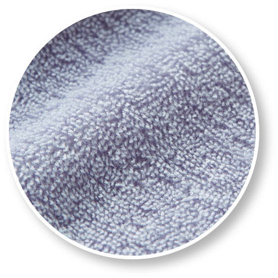 タオルのようにやわらかな肌触りの綿100%パイル。伸縮性よくピタッとフィットします。