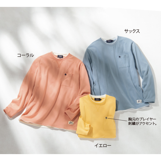 衿元のV字ステッチでこなれ感アップ。コーデ不要の重ね着風デザイン。