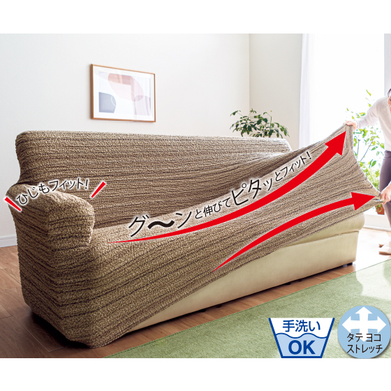 ●対応サイズ:幅70〜90(ひじあり1人掛用)・幅130〜170(ひじあり2人掛用)・幅170〜210(ひじあり3人掛用)×奥80〜90×高90cmまで、幅60〜80(ひじなし1人掛用)・幅120〜160(ひじなし2人掛用)・幅160〜200(ひじなし3人掛用)×奥85〜90×高85cmまで