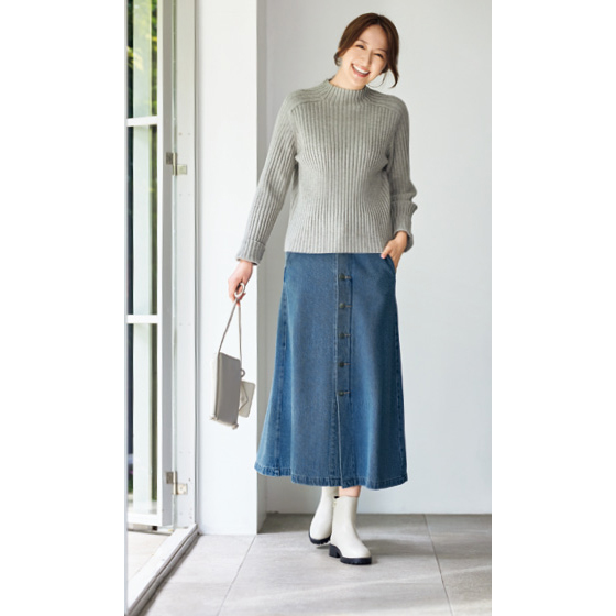 60代前半の私にも着こなしがしやすいです。ちょっとしたお出掛けにもOKなデニムスカートです。