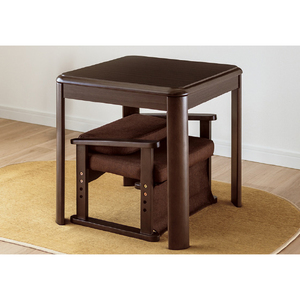 ●材質:天板=繊維板(ウレタン樹脂塗装)、脚部=天然木、<掛けふとん>側地=ポリエステル100%、中材=ポリエステル100%(正方形(58)=0.08kg、長方形(70)=0.09kg)、<椅子>背部=スチール、脚部=天然木(ラッカー塗装)、座部=合板、張地=ポリエステル、中材=ウレタンフォーム