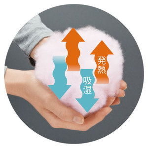 まわりの水蒸気を吸収するとき、「吸着熱」と呼ばれる熱を発生する繊維。消臭効果(アンモニア・酢酸)もあるので暖かく快適。