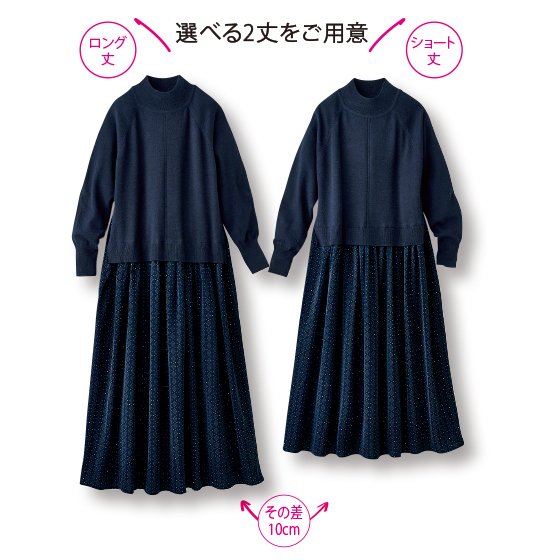 ●素材:ニット部分=アクリル60%・ナイロン40%(ニット、天竺)、スカート部分=ポリエステル100%(織物、朱子織)