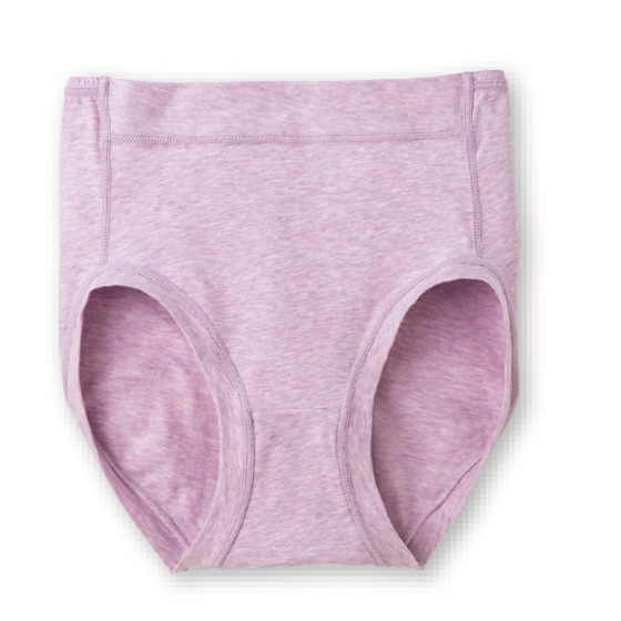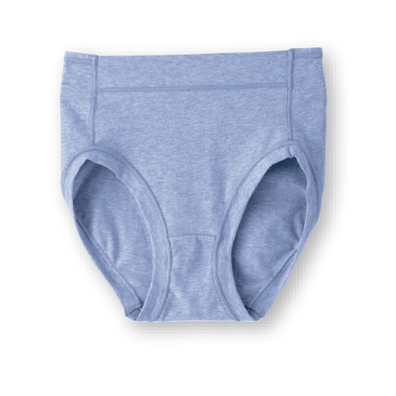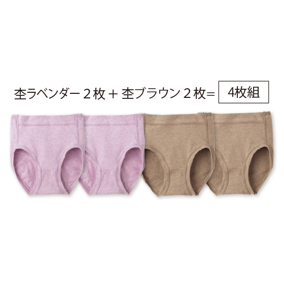 ウエスト前部と脚口はゴムを使わず、身生地を折り返したラクな仕様。薄手でしなやかな綿混生地を使い、ウエスト後ろゴムも生地でくるみました。レースを使わず、縫いしろはすべて外側で平らに倒し、肌側がなめらか。洗濯表示を生地裏に転写プリントし、ラベルの刺激をなくしました。