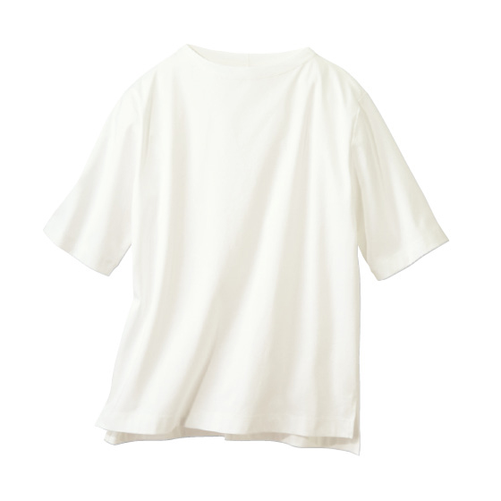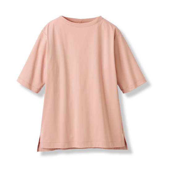 気になる首元や二の腕を隠しながら、日差しや冷房からもカバー。光沢感のあるこだわりコットン使いで、大人に着映えるTシャツです。透けにくいので1枚着も安心。二の腕をカバーする5分袖。後ろシーム入りで背中もすっきり。