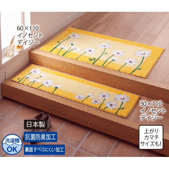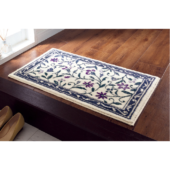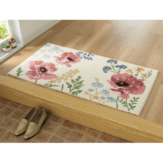 季節の変わり目で入れ換えるのに丁度よく、春めいた色柄は玄関が明るくなり、来客時によい雰囲気です。手入れもしやすく、滑り止めテープが四隅に貼ってあり利便性も考え抜かれています。