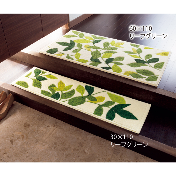 玄関には落ち着いた色合いがいいかと思い、リーフグリーンにしました。横幅を優先してサイズを選んだのですが、縦が短めだったので、敷いてみるとコンパクトな感じになりました。滑り止めがついているので、犬が上で暴れてもずれません。毛足もしっかりしているので、踏み心地もいいです。まだ洗濯はしていませんが、けっこう満足な買い物でした。