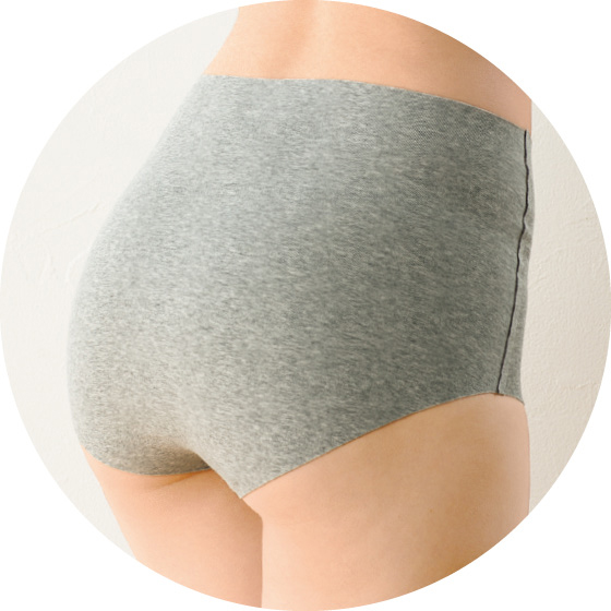 おなかもヒップもすっぽり包む深ばきタイプです。マチ裏は綿混素材です。