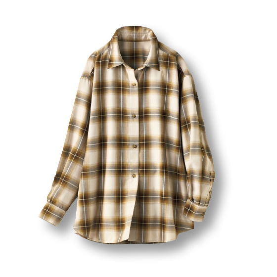 落ちついたトーンで着映える、大人仕様の大柄チェック。