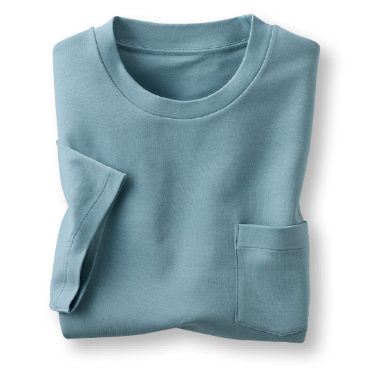 抗菌防臭、吸水速乾の綿100%スムース素材。後ろ衿が高めでアウターの衿汚れを軽減。