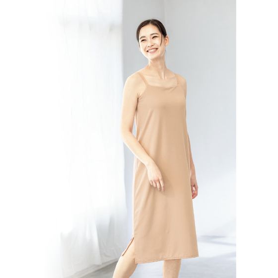 ワンピースの下に一枚で着るのに丈が長いのを探していました。体に纏わりつかないでサラッと着れて便利です