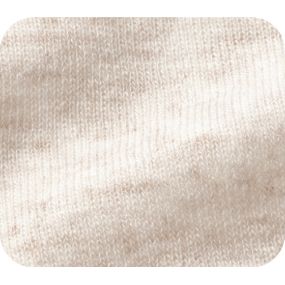 細番手のオーガニックコットン糸で編んだ、やわらかな風合い。色も自然な杢調に。