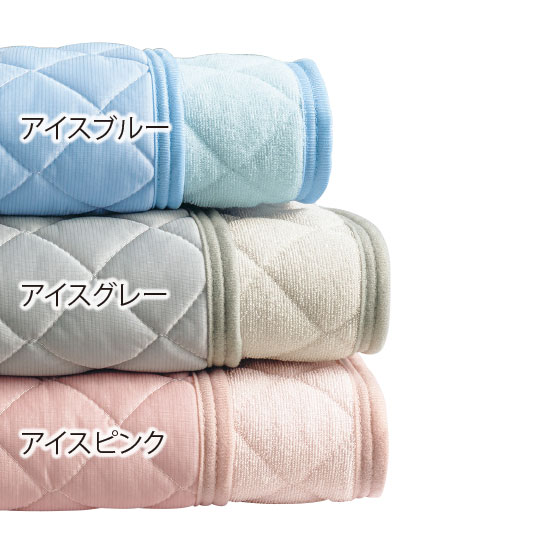 ●素材:表側=ポリエステル75%・複合繊維(ポリエステル・ナイロン)25%(接触冷感・吸汗速乾)、裏側=毛羽部/綿100%、グランド糸/ポリエステル100%、詰めもの=ポリエステル100%(抗菌防臭加工、シングル=0.2kg、セミダブル=0.24kg、ダブル=0.28kg)