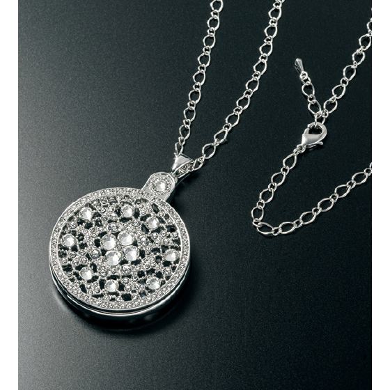 ●材質:本体=亜鉛合金(亜鉛メッキ)・クリスタルガラス、レンズ=樹脂、チェーン・留め具=鉄(亜鉛メッキ)
