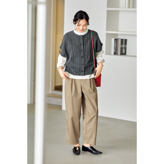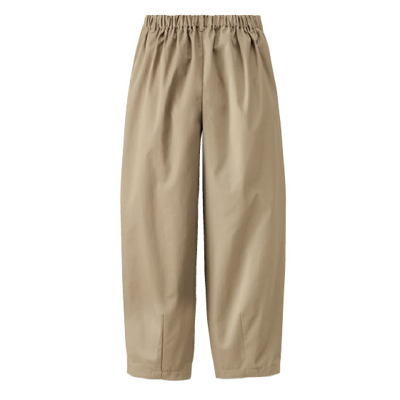 ヒップやもも回りはゆったり、裾の後ろにダーツを入れて絞った、おとながはきやすいカーブシルエット。ハリのある綿混ツイル素材で、カジュアルにはいてもきれい見え。※春秋冬、3シーズン着用できます。