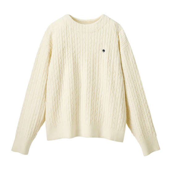 トラッドな印象のニットを、ゆるシルエットで絶妙なカジュアル感に。胸元にあしらった「POLO BCS」のプレイヤー刺繍がアクセント。ワイドパンツやスカートにも合わせやすいコンパクトな丈感です。