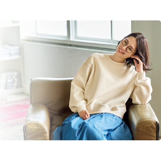 厚手すぎず、軽くてやわらかな着心地。ほどよいハリ感できれい見えして大人カジュアルが決まるので、冬まで活躍すること間違いなし。