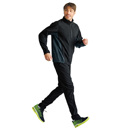 裏起毛ストレッチ&配色で、動きやすくスマート見え。