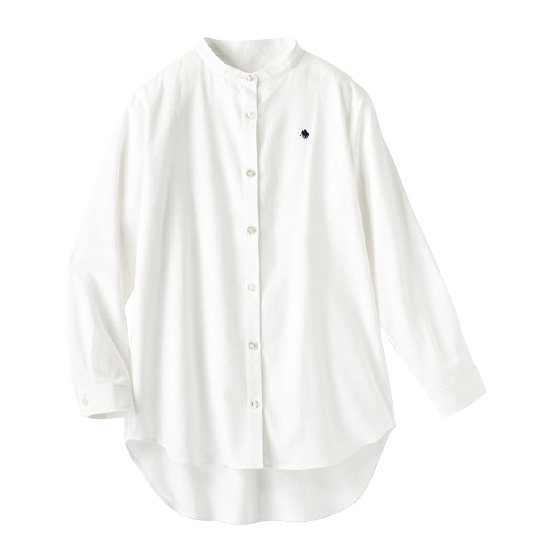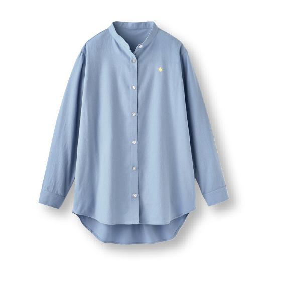 やさしい肌触りのコットン100%素材に起毛加工をプラス。端正なバンドカラーで1枚着にも、ベストやニットとの重ね着にも活躍。
