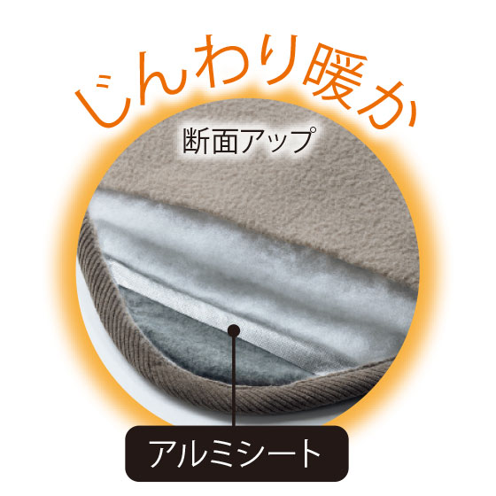 ●素材:表側=ポリエステル99%・ナイロン1%、中材=ポリエステル100%・アルミ蒸着不織布、裏面=不織布張り(すべりにくい加工)