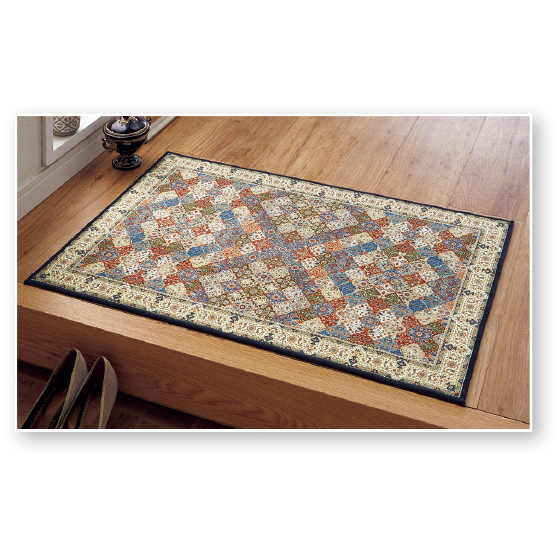 ペルシャじゅうたんを思わせる繊細で優雅な2柄。ブラウン系とネイビー系で柄が異なり、お部屋に合わせて選べます。