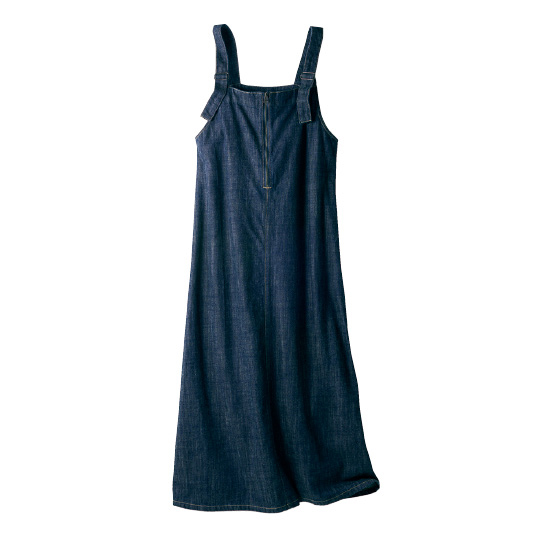 甘撚りでやわらかな風合いに仕上げた「クロキ」の本格デニム生地。前ジップで着脱もラク。※通年着用できます。