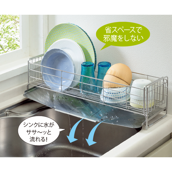 ●材質:水切りバスケット・斜めトレー=ステンレス鋼、脚ゴム・クッションチューブ=シリコンゴム