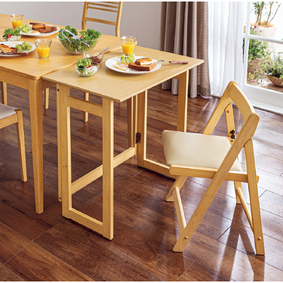 今までローテブルで食事やその他色々日常の生活をしていたのですが年齢的に立ち上がりがしんどくなってきて、1人なので大きな物は必要なく場所もあまり取りたくなかったので折りたたみならとおもい購入しました。椅子は背もたれが低いので長時間座るのには向いていないと思いますが、テーブルはしっかりしていてとてもよかったです。