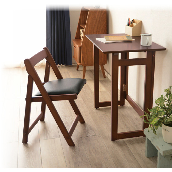 折り畳み式なので不要な時は場所を取らず収納出来る。組み立てもシンプルで不器用な私でも簡単に組み立てられました。また子供の勉強机にも使用できるし、とっても便利です。机と椅子がペアでお得感があります。追加で注文しました。