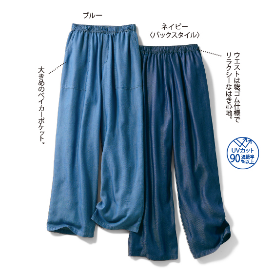 軽くてやわらか、さりげない艶で上品映えするデニム生地。なめらかな落ち感ですっきり見えも。※春夏秋におすすめです。