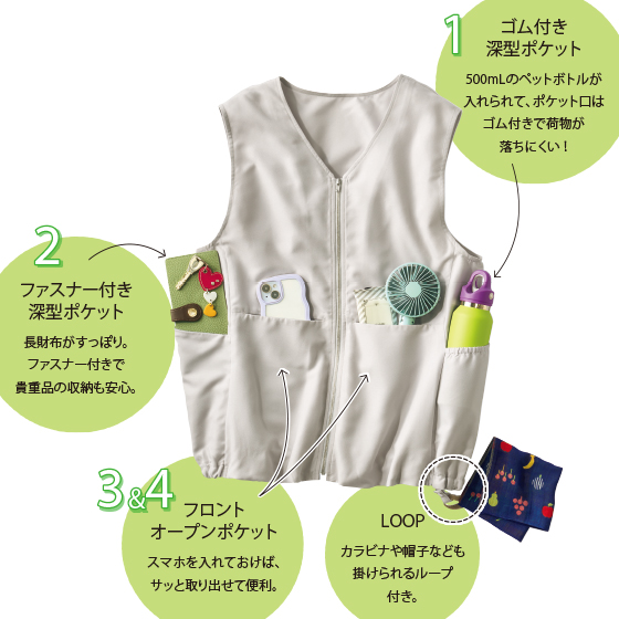 多ポケットで機能的なのに、バルーンシルエットでかわいくお出かけ映え。ロングシーズン使えて、非常用グッズをいれておけば、災害時の備えにも。