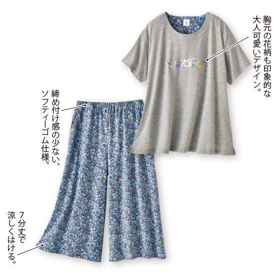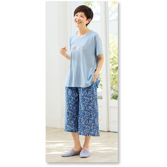 〈日比谷花壇〉の花と暮らす、綿混天竺のルームウエア。