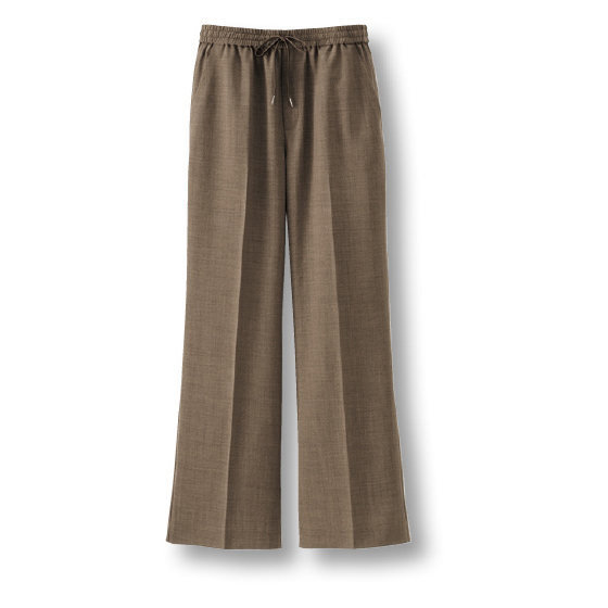 表面感のある麻調素材はシワになりにくくお手入れ簡単。セミフレアで脚長見えし、ウエスト総ゴムではき心地もラク。※春夏秋、3シーズン着用できます。
