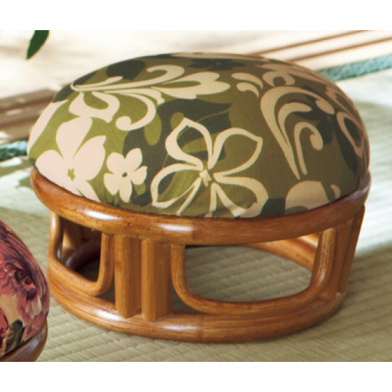 おしりをやさしく支えるウレタンフォーム入りの座面。軽くて丈夫な籐製。小さいので持ち運びもラクラク。