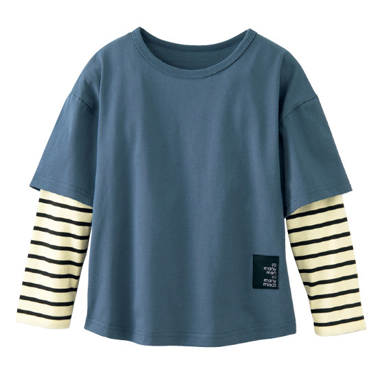 長袖のボーダー柄がアクセント。しなやかな綿天竺に、丈夫で長持ちする加工を施したリピコットで着心地も◎。男女児兼用。