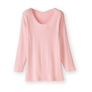 綿100%素材に、体の湿気を吸って熱に換える吸湿発熱加工を施しました。暖かな着心地を保ちます。わき縫いなしで、ゴロつきにくい。