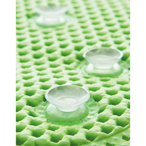 ガッチリ吸い付く36個の吸盤が浴槽にしっかり吸着!お湯の中でもずれにくく、ソフトな素材で段差もできにくい。
