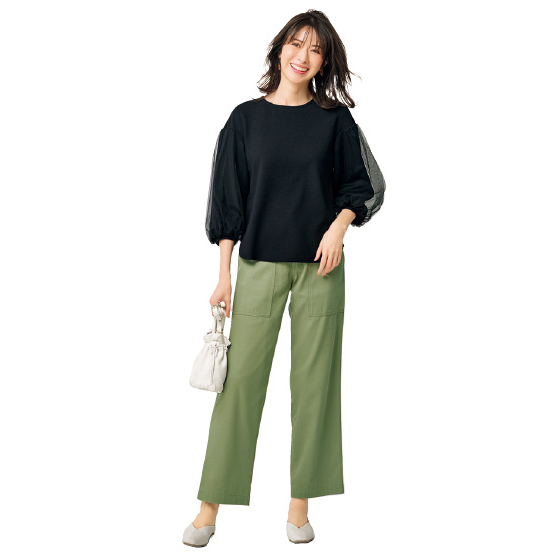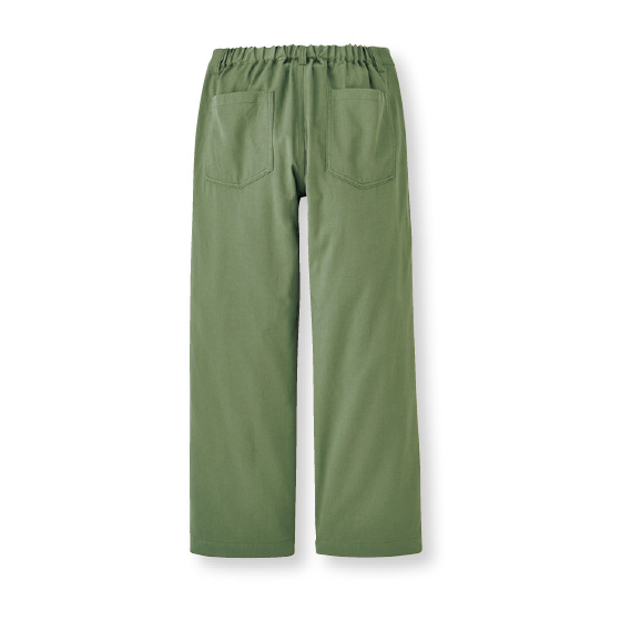 ほどよいハリ感のしなやか素材で品よく仕上げて、おとなもはきやすく。体形をほどよくカバーするストレートシルエット。※春夏秋、3シーズン着用できます。