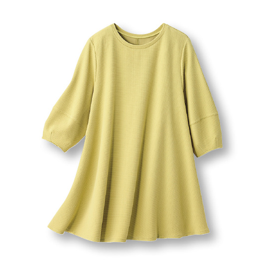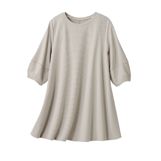 ゆったりAラインとぽわん袖で、気になる体形をおしゃれに目隠し。