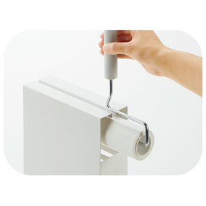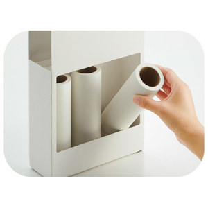 左右の開口部から横にスライドするだけで、出し入れ楽々。スペアテープを3本収納可能。広い開口部でテープ交換もスムーズ。※ハンディクリーナーやスペアテープは付きません。