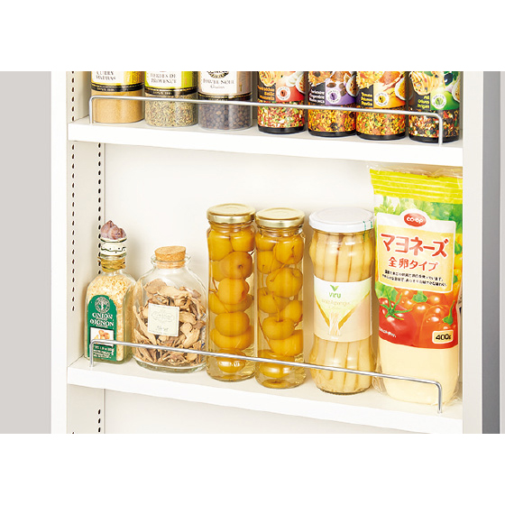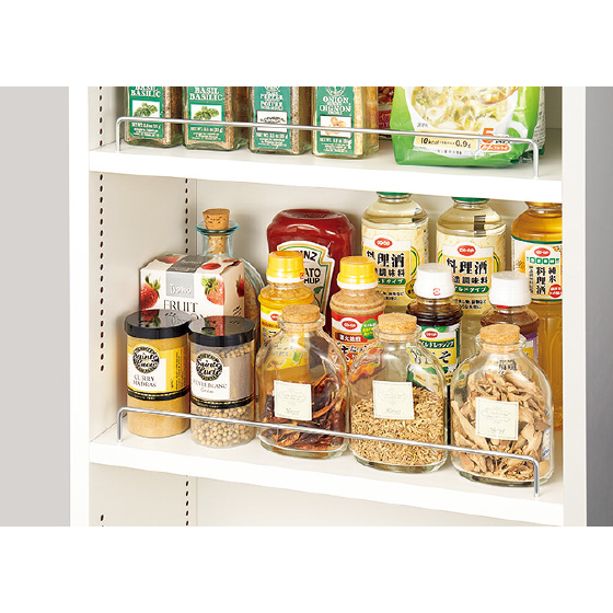 棚板は1pピッチで可動できます。こぼれ止めバー付き!
