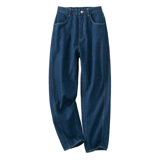 ゆるやかにカーブする丸みのあるシルエット。腰回りや脚線をカバーしながら、今どき見えも叶うデニムです。厚すぎないしなやかな生地で、大人にラクなはき心地。※通年着用できます。