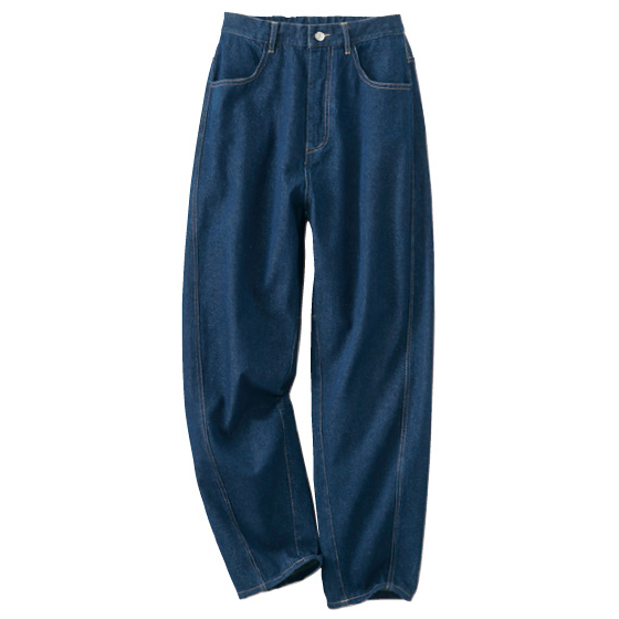腰や脚線をカバーして、ゆるさが今見えする旬デニム。極端すぎないカーブで大人がはきやすく、厚すぎない柔らか生地ではき心地もラク。※通年着用できます。