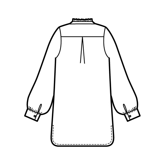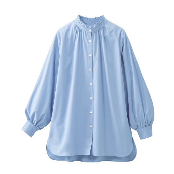 ギャザー仕様でふんわり袖に。ヒップがすっぽり隠れる長め丈。